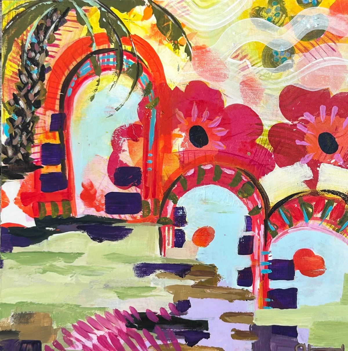 POPPY GATES : : 12x12 acrylic, mixed media on panel : : 2026