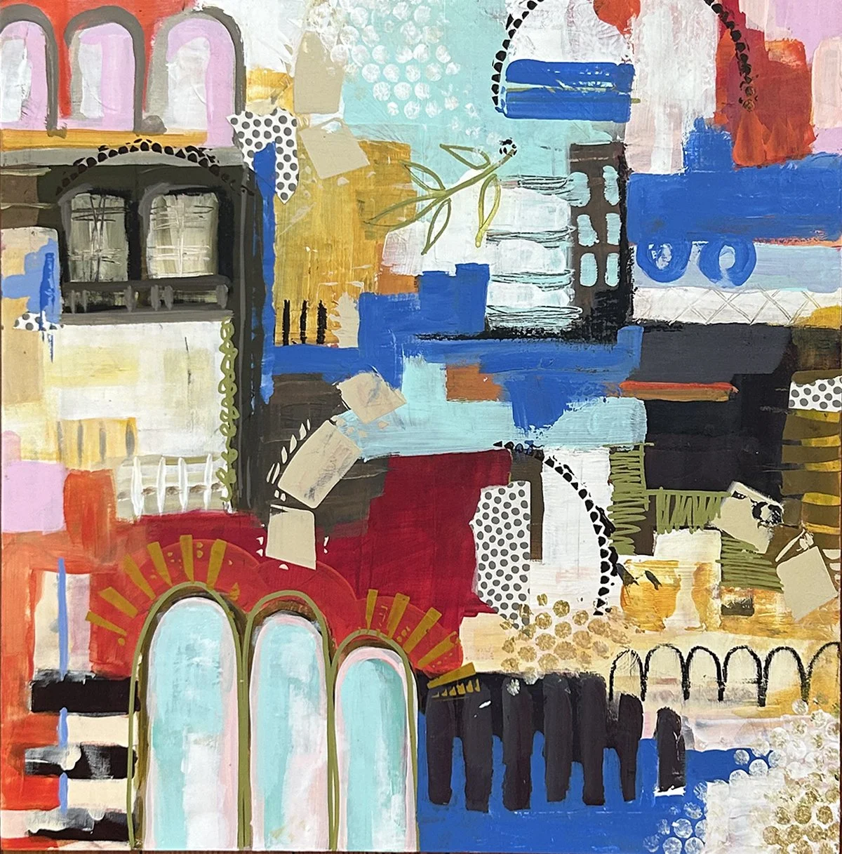 SEVILLA : : 18x18 acrylic, mixed media on panel : : 2025