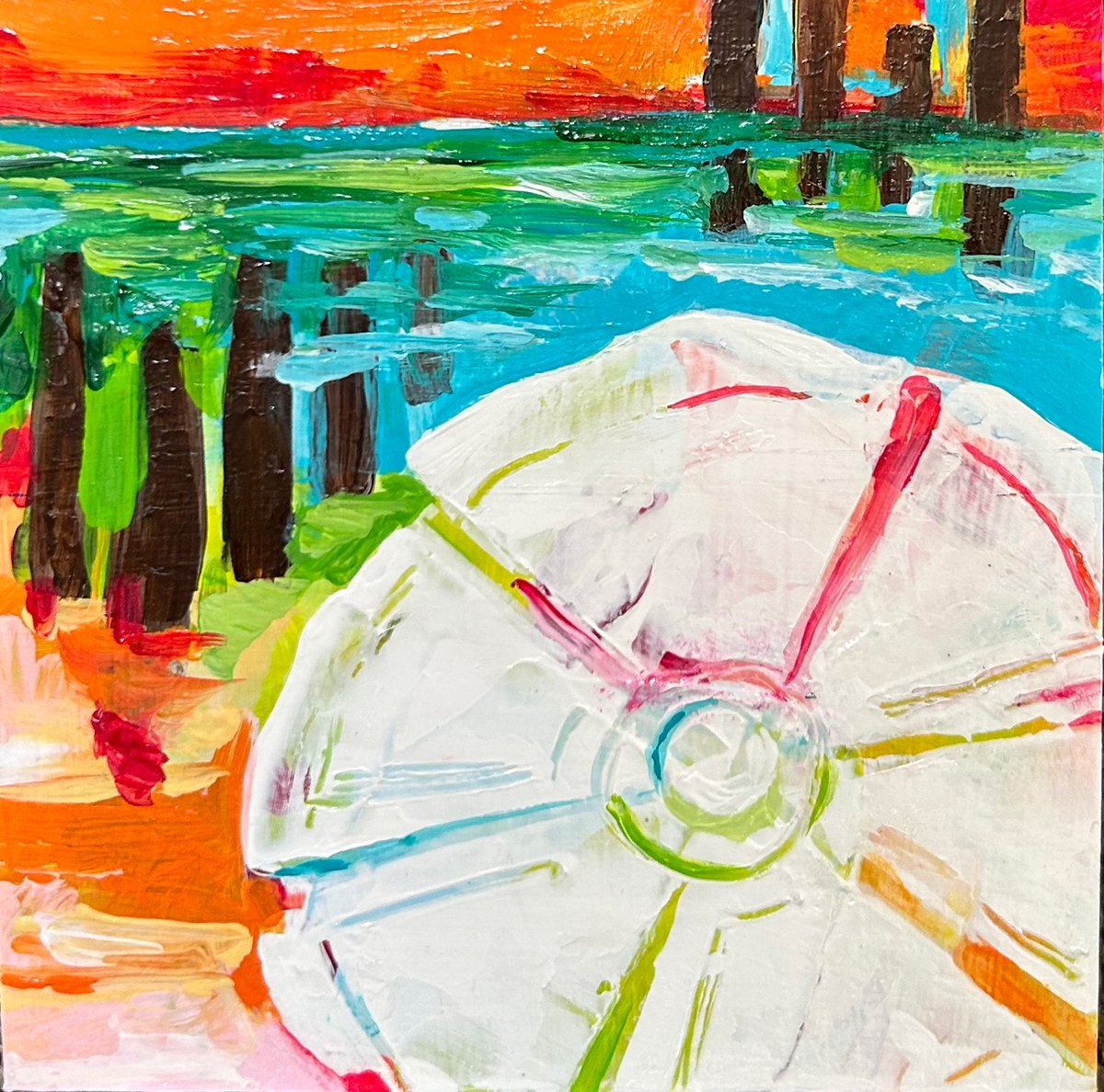 BEACH CLUB : : 18x18 acrylic on panel : : 2025
